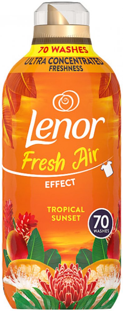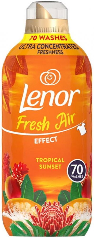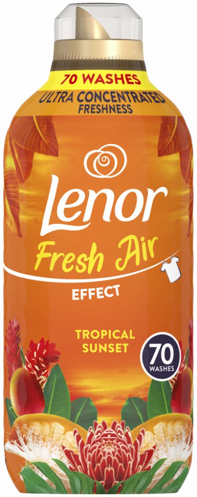 Lenor Fresh Air TROPICAL SUNSET 980ml Ultra koncentrované složení Lenor aviváže Fresh Air Effect je dvakrát koncentrovanější než u ostatních aviváží značky Lenor. V lahvi najdete své zážitky z dovolené, když vás sladké tóny melounů a manga odnesou do vzdálené, sluncem políbené země.