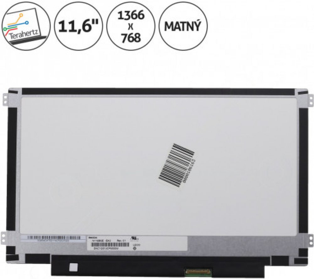 Konektor 30 pin konektor vpravo dole / Podsvícení LED / Povrch displeje matný / Pozice úchytů 4 na stranách / Rozlišení 1366 x 768 HD / Stav nový / Typ displeje Slim / Úhlopříčka 11,6