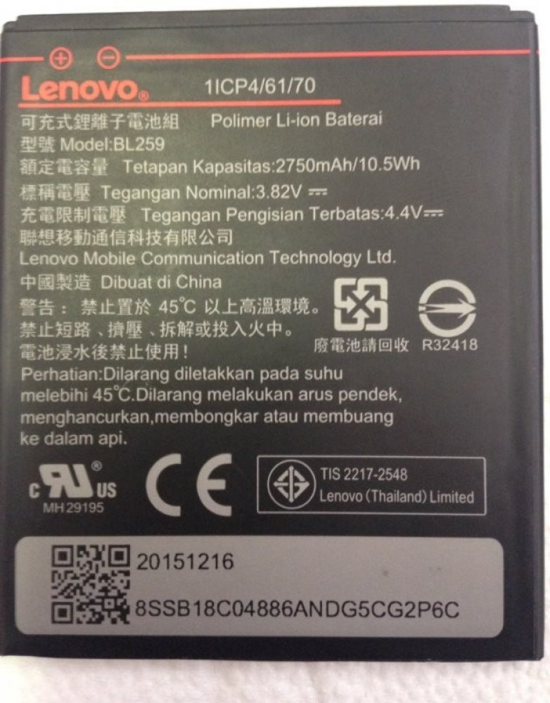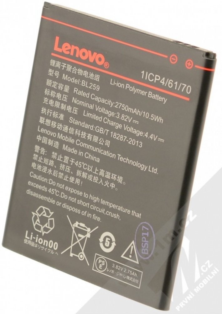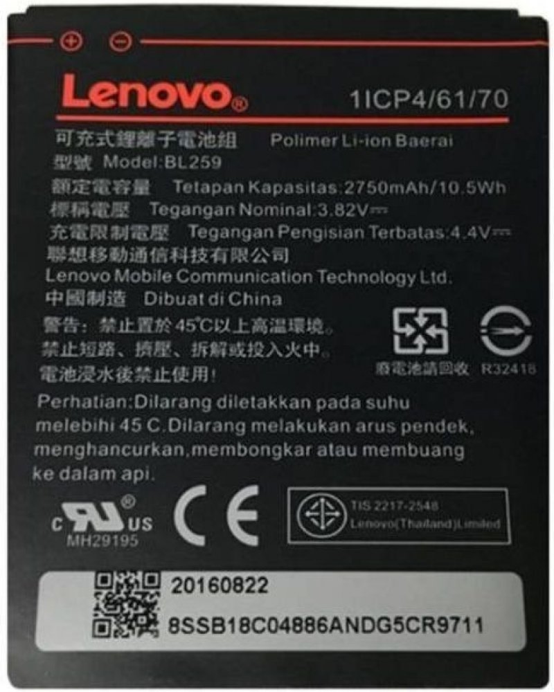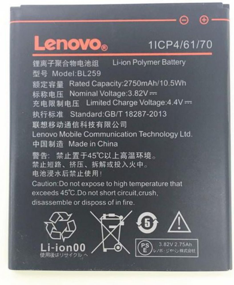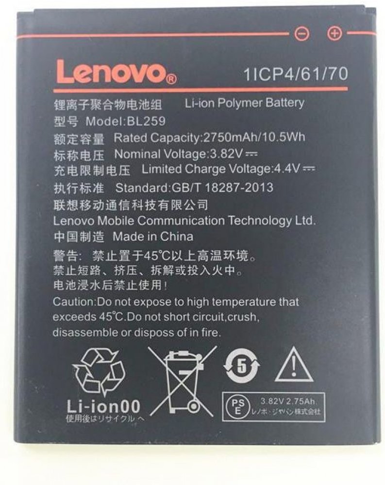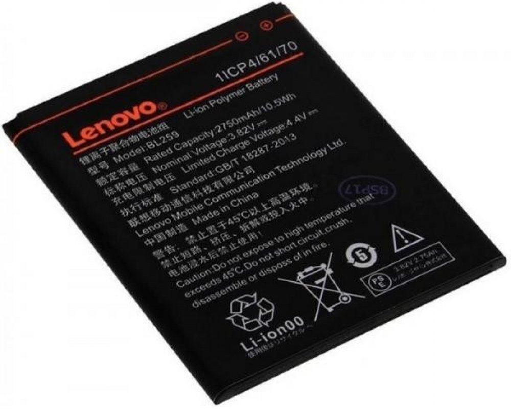 Baterie Lenovo BL259 Lithium Polymer nemá paměťový efekt a má ochranu proti přebití, přepólování a přehřátí.