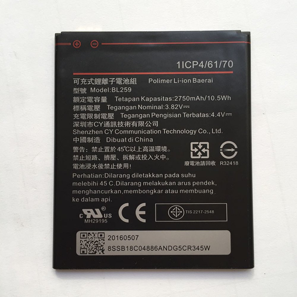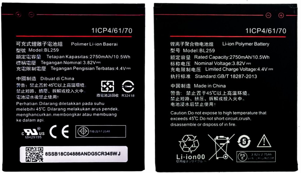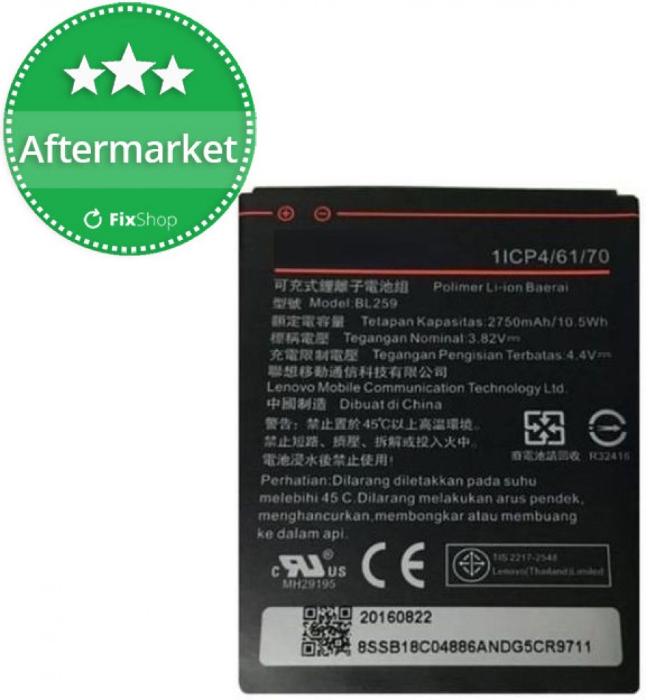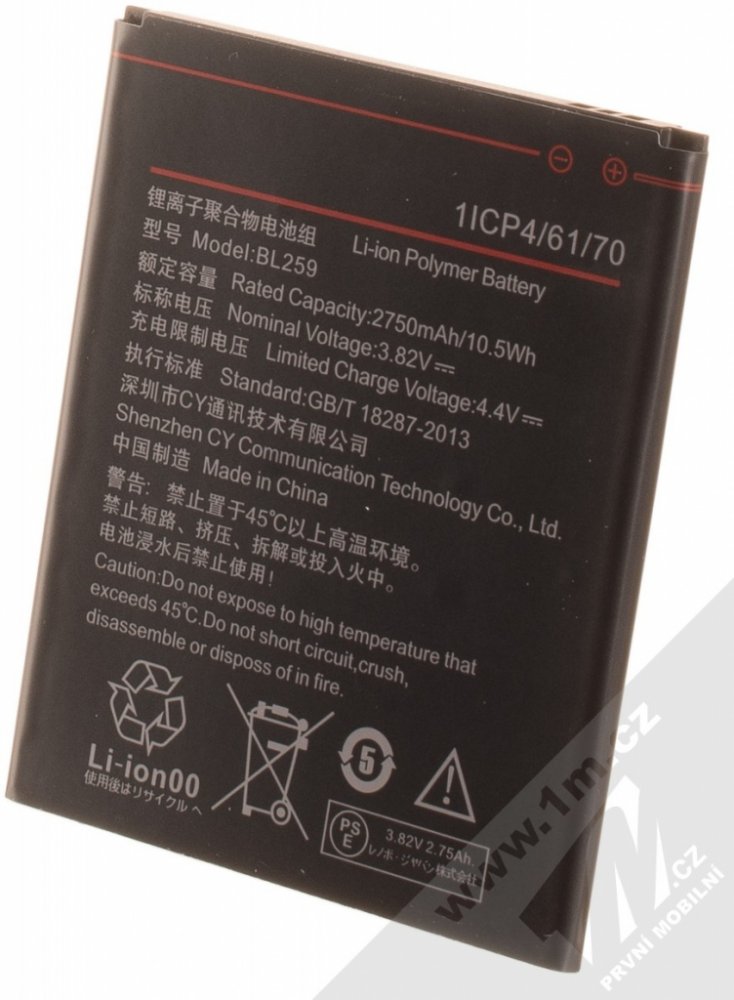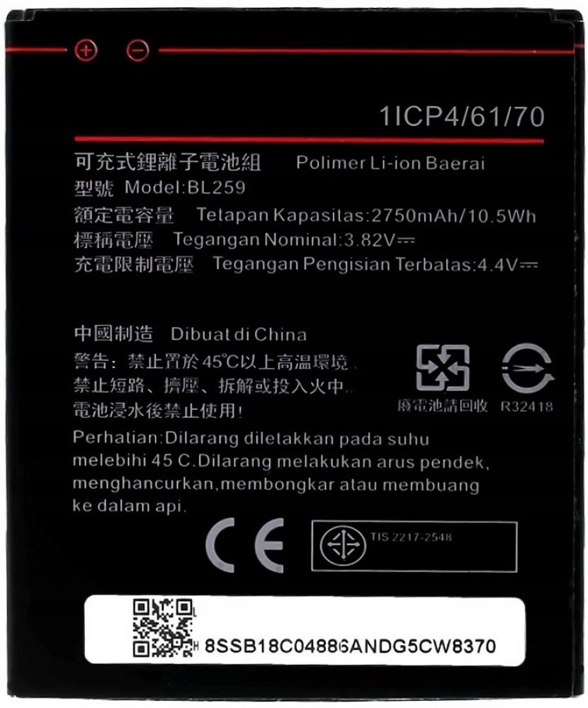Baterie Lenovo BL259 Lithium Polymer nemá paměťový efekt a má ochranu proti přebití, přepólování a přehřátí.