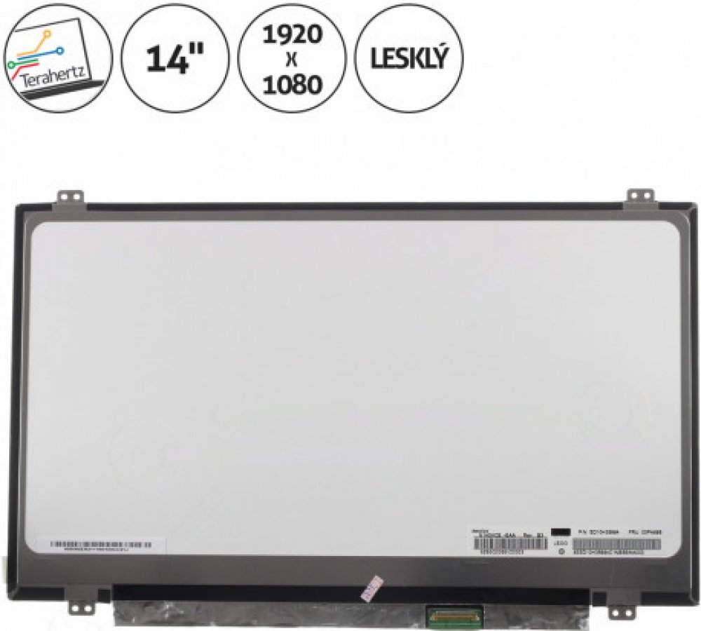 Konektor 30 pin konektor vpravo dole / Podsvícení LED / Povrch displeje lesklý / Pozice úchytů 2 nahoře a 2 dole / Rozlišení 1920 x 1080 Full HD / Stav nový / Typ displeje Slim / Úhlopříčka 14 / Záruka 24 měsíců / Technologie displeje IPS