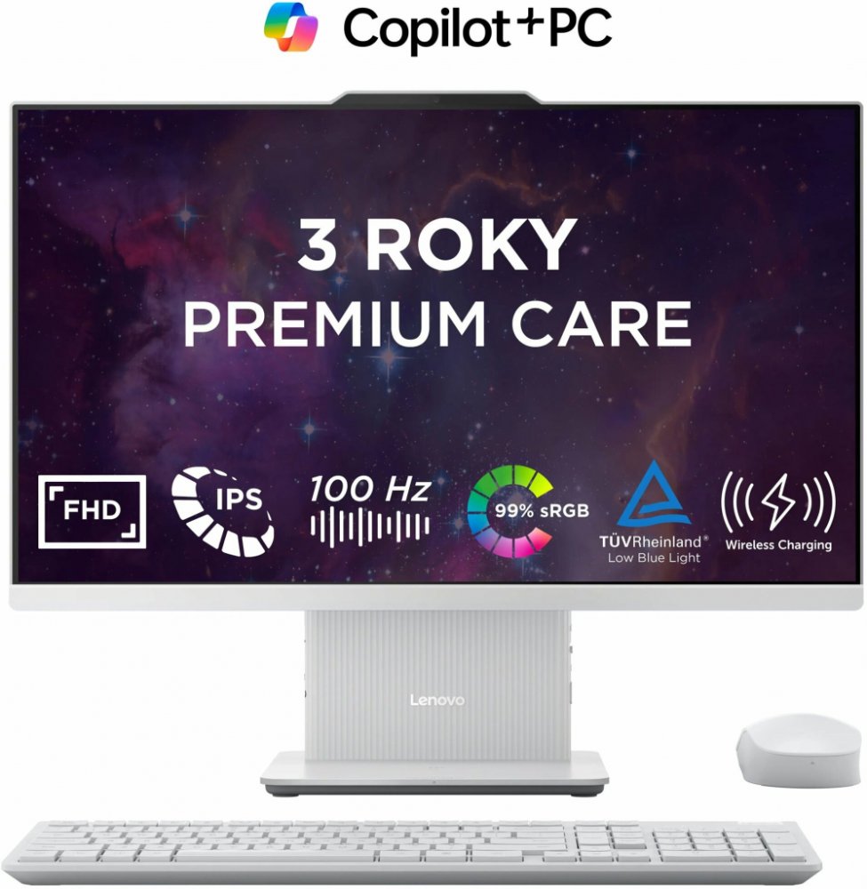 All-in-One počítač s AMD Ryzen AI 7 350, 23.8" IPS antireflexním displejem 1920×1080 100Hz, RAM 16GB DDR5 (až 32GB), SSD 512GB, integrovaná AMD Radeon 860M Graphics, bez mechaniky, USB-C, HDMI in/out, Wi-Fi 6, ethernet, bezdrátová klávesnice a myš, Qi nabíječka ve stojanu, hmotnost 6 kg, Windows 11 Home, 3Y Premium Care On-site