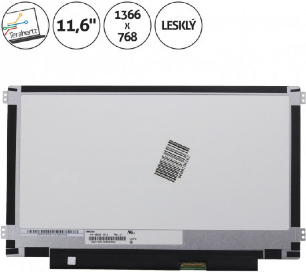 Konektor 30 pin konektor vpravo dole / Podsvícení LED / Povrch displeje lesklý / Pozice úchytů 4 na stranách / Rozlišení 1366 x 768 HD / Stav nový / Typ displeje Slim / Úhlopříčka 11,6