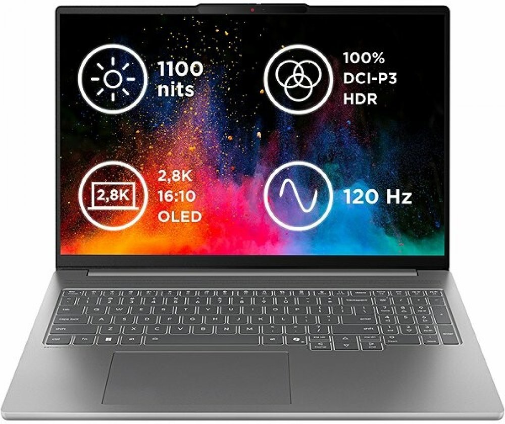 Notebook 16" 2.8K (2880x1800) OLED 500nits lesklý, 120Hz, 100% DCI-P3, procesor AMD Ryzen AI 7 350, 32GB RAM LPDDR5x, 1TB SSD M.2 2242, PCIe 4.0x4 NVMe, GeForce RTX 5050 8GB, 1.72 kg, bez OS, kovový