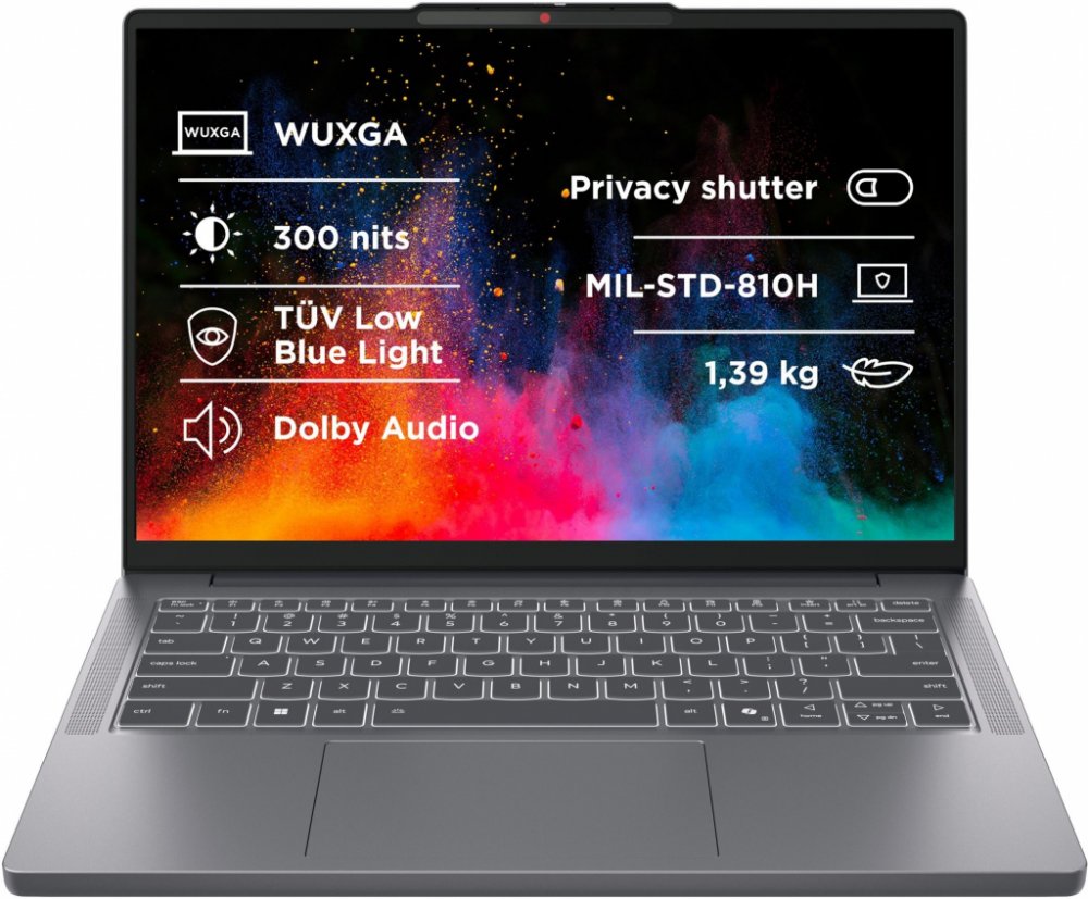 Displej: IPS, 14", WUXGA (1920x1200), 300 nitů, Antireflexní, 16:10, 1000 : 1, 45% NTSC, 60Hz, 4x 89°pozorovací úhly, TÜV Low Blue Light (SW)