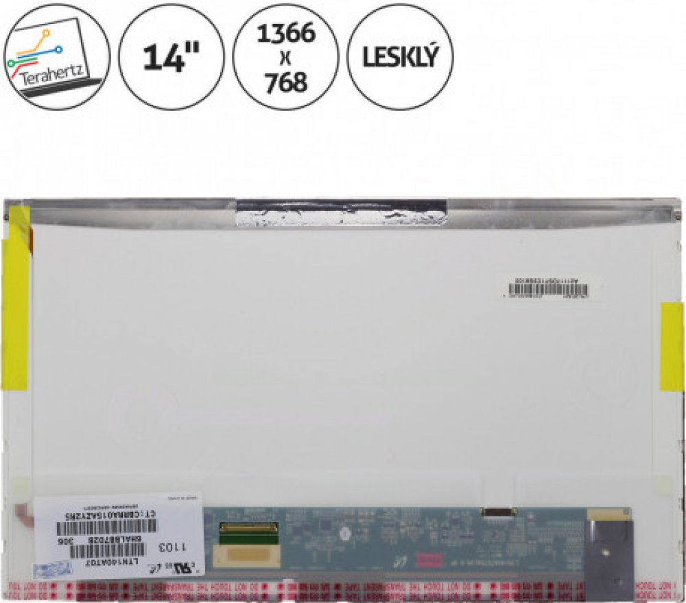 Konektor 40 pin konektor vlevo dole / Podsvícení LED / Povrch displeje lesklý / Rozlišení 1366 x 768 HD / Stav nový / Úhlopříčka 14