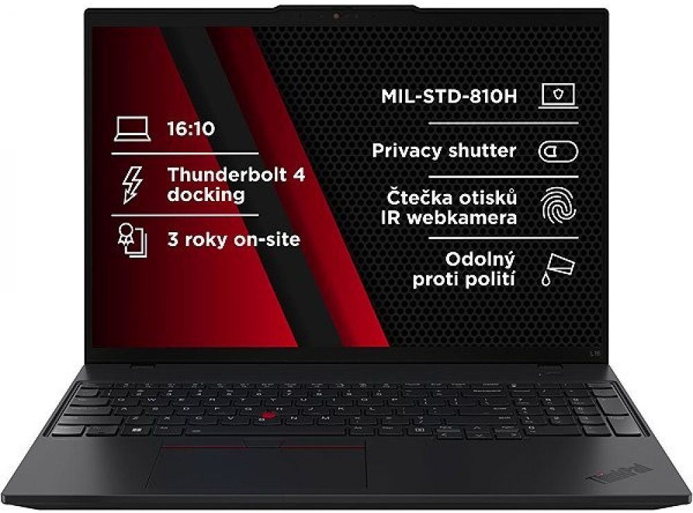 Notebook Lenovo ThinkPad L16 Gen 2, procesor Intel Core Ultra 7 255U, Integrovaná grafická karta Intel Graphics, 16" Antireflexní displej s rozlišením 1920 x 1200 (Full HD+) (16:10), jas 400 nitů, obnovovací frekvence 60 Hz, 1000 GB SSD uložiště, Bluetooth 5.3, operační paměť 32 GB DDR5 (5600 MHz), operační systém Windows 11 Pro. .