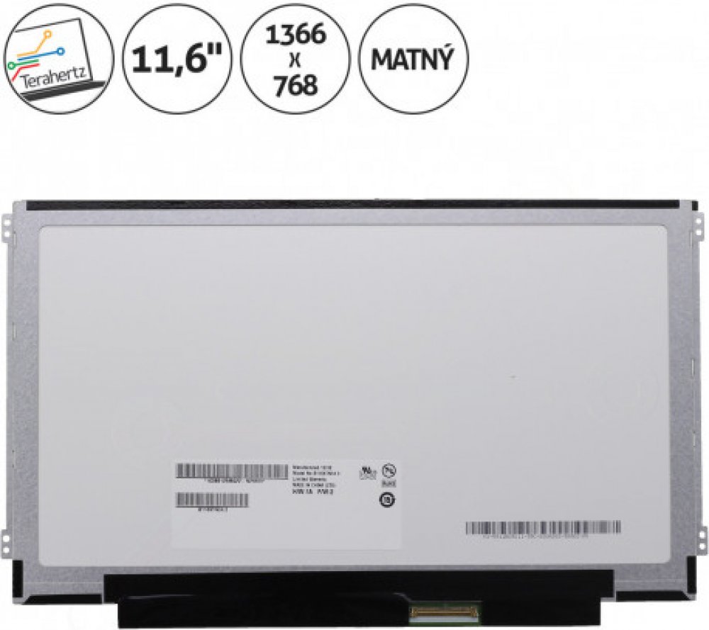 Konektor 40 pin konektor vpravo dole / Podsvícení LED / Povrch displeje matný / Rozlišení 1366 x 768 HD / Stav nový / Typ displeje Slim / Úhlopříčka 11,6 / Šířka úchytů 157 mm