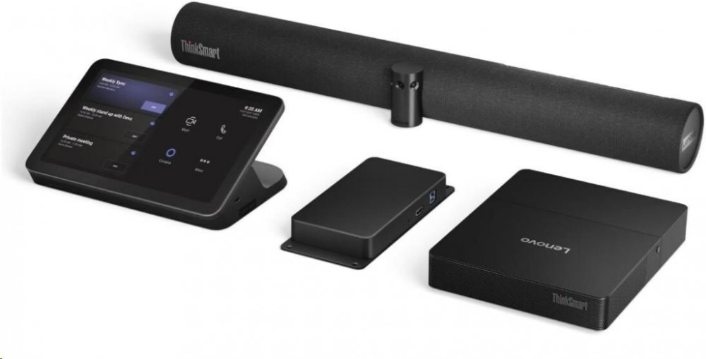 Rozměry: 185 x 38 x 220 mm (ŠxVxH) + Controller 265,5 x 13 x 168,1 mm + ThinkSmart Bar 650 x 80 x 125 mm