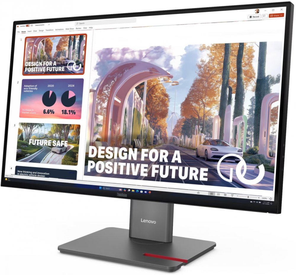 Nabízený LCD monitor Lenovo s úhlopříčkou 27" umožňuje pracovat v Quad HD (2560 × 1440) rozlišení. Jeho IPS panel má výbornou reprodukci barev, nižší kontrast a obraz zůstává stejně kvalitní i při změně pozorovacího úhlu. IPS panel má navíc velmi nízké riziko vypálení, což přispívá k jeho dlouhé životnosti. Pracuje s 10bitovou barevnou hloubkou. Antireflexní povrch displeje snižuje odlesky a zlepšuje viditelnost v různých světelných podmínkách. Zásluhou standardního poměru stran 16:9 si pohodlně otevřete například textové zadání s grafickým editorem vedle sebe a budete moci s okny efektivně pracovat. Maximální jas 350 cd/m² je navržený pro práci mimo dosah přímých slunečních paprsků a také se hodí do místností, které nejsou příliš osvětlené. Je možné jej uchytit pomocí tzv. VESA uchycení 100×100 na zeď nebo na stojan. Snadno si tak uspořádáte pracovní prostor s několika monitory. Hlavní přednosti monitoru 27" Lenovo ThinkVision P27QD-40 Pracujte efektivně s tímto 27" LCD monitorem Lenovo s Quad HD (2560...