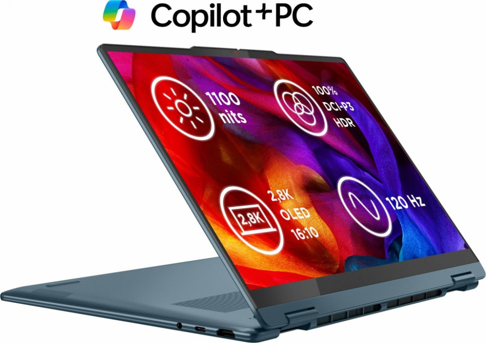 5 GHz AMD Ryzen AI 7 8 24 GB LPDDR5x 14 palce OLED 120 Hz 16 : 10 lesklý displej 1100 nitů excelentní/profesionální AMD Radeon 860M WiFi 7 Bluetooth 5.4 1.38 kg kovové tyrkysové Windows 11 Home Lenovo Lenovo Yoga 2023 1 2 1000 GB M.2 velmi rychlé NVMe 70 Wh AMD Ryzen AI Copilot+ PC (40+ TOPS)