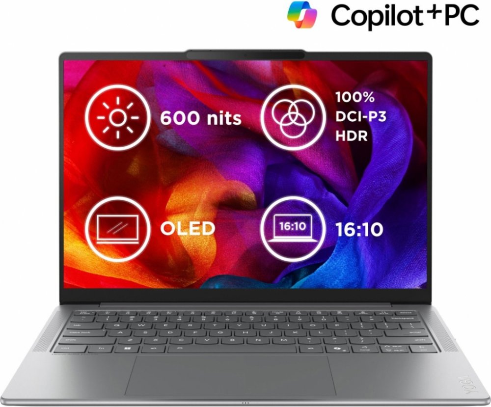 4.5 GHz Intel Core Ultra 5 8 16 GB LPDDR5x 0 512 GB 512 GB M.2 velmi rychlé NVMe nelze rozšířit 14 palce 1920 x 1200 OLED 60 Hz 16 : 10 lesklý displej 400 nitů excelentní/profesionální ano, běžně tichý HD kvalita (1080p) Intel Arc 130V 0 GB integrovaná karta WiFi 7 Bluetooth 5.4 1.19 kg 312 mm 13.9 mm 288.0 mm sklo a hliník šedé Windows 11 Pro Lenovo Lenovo Yoga 2023 17.5 hodin 70 Wh 65 W celodenní výdrž 0 1 1 2 2 český / slovenský Podsvícená, kompaktní běžná práce Intel AI Boost Copilot+ PC (40+ TOPS)
