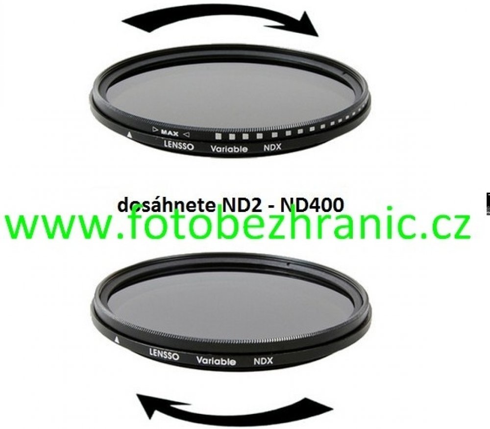 Variabilní šedý filtr ND2 – ND400 – plně variabilní , umožňuje použít delší dobu expozice, obzvláště vhodný pro fotografování krajin. Neměl by chybět v žádné fotografické brašně, tento filtr nejde nahradit v žádném grafickém editoru.