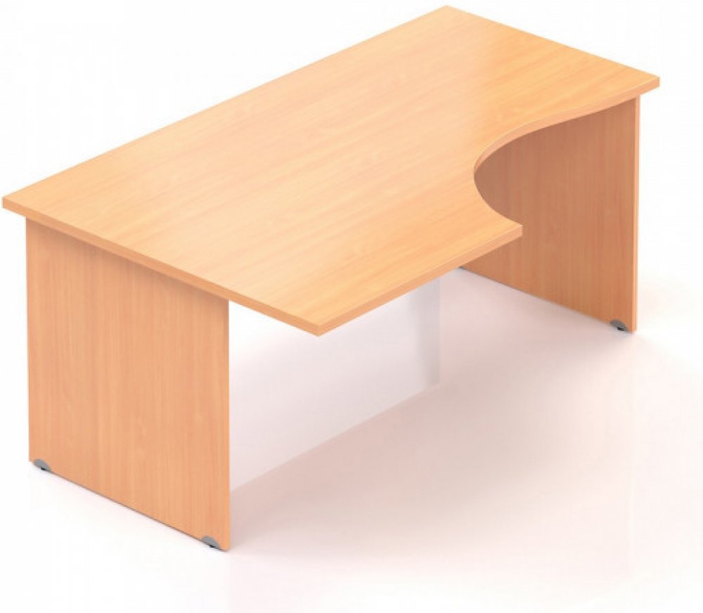 Kam se hodí?Stůl Visio s rozměry 160 x 100 cm doporučujeme zejména pro pracovny zaměstnanců a nižšího managementu. Jedná se o jednu z cenově nejvýhodnějších nábytkových řad a hodí se jak do uzavřených, tak i do open space pracoven.Řada Visio vám umožní optimálně přizpůsobit prostor, díky čemuž získáte dostatek úložného místa pro věci, které potřebujete mít neustále po ruce. K tomuto stolu si můžete pořídit buď pojízdný kontejner pod desku stolu, nebo přístavný kontejner na rozšíření stolové desky.Do své kanceláře či pracovny si můžete objednat také skříně z této řady nebo některý z nabízených doplňků. Ke kancelářským stolům doporučujeme zejména paraván.Stůl ve stejné velikosti nabízíme také v provedení pro pravou stranu.Sestava nábytku Visio - javorSestava nábytku Visio - bukPro jaký druh práce je určen?Stůl Visio oceníte při práci na počítači i při papírování. Každou stranu stolu si můžete vyhradit pro jinou činnost, což vám pomůže udržet si na pracovní ploše přehled a pořádek.Vrchní deska je vyrobená z laminované dřevotřísky o síle 28 mm a má na délku 160 cm. Stůl disponuje mezi svou vrchní a čelní deskou praktickým otvorem, který poslouží pro vyvedení kabeláže. Hloubka stolu je v nejširším místě 100 a v nejužším 70 cm. Budete mít tedy dostatek prostoru pro klávesnici a myš.Vzhledem k rohovému provedení stolu jej doporučujeme umístit ke zdi z levé strany.Vhodná výška stolu předchází bolestem zadS výškou 76 cm splňuje stůl Visio ergonomické požadavky pro kancelářský nábytek. Stojí na plné dřevěné podnoži z laminované dřevotřísky o tloušťce 18 mm.Stůl je vybaven nastavitelnými nožkami, díky kterým můžete změnit jeho výšku až o 10 mm a přizpůsobit si jej k vlastní postavě. Nastavitelné nožky vám také pomohou vypořádat se s nerovnostmi podlahy.Pokud trávíte v kanceláři až osm hodin denně, nepodceňte výběr židle. Pro pohodlné sezení doporučujeme využít nabídku kancelářských židlí.Ideální ergonomické nastavení kancelářského nábytkuDezény: javor, buk, ořech, třešeň, bíláSvětlý nebo tmavý dezén?Stoly Visio nabízíme v 5 dezénech, které vám zaručí jednotný vzhled vaší kanceláře.Světlé dezény, kterými jsou buk a javor, navozují příjemnou pracovní atmosféru a kancelář se díky nim zdá prostornější.Tmavý dezén, jako je třešeň nebo ořech, naopak vyvolává pocit stability a autority.Bílá barva je skvělou volbou např. do ordinací, ale také do moderně zařízených interiérů.