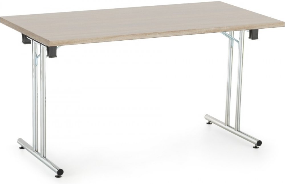 Skvělé řešení do menších prostorůSkládací stůl Impress s rozměry 140 x 80 cm je skvělým řešením zejména do administrativních prostorů nebo konferenčních či zasedacích místností. Využijete je všude tam, kde dochází často k přesunům či změnám v uspořádání místnosti.Nábytková řada Impress nabízí také širokou škálu jiných prvků, které vám pomohou optimálně přizpůsobit konkrétní místnost. Třeba prostřednictvím kontejnerů, které zajistí další úložný prostor a budete tak mít vždy vše potřebné po ruce. Využít však můžete také skříní nebo některého z doplňků této řady.Při rovnoměrném zatížení je maximální nosnost stolu 80 kg.Kovová podnož skládacího stolu ImpressStohování stolů vám ušetří mnoho místaUšetřete místo stohovánímHorní deska skládacího stolu je vyrobena z laminované dřevotřísky o síle 22 mm. Stojí na stabilní kovové podnoži, která při rozložení vytvoří výšku stolu 73,2 cm.Velkou výhodou skládacího stolu Impress je maximální úspora místa při skladování. Stoly jsou totiž stohovatelné a umožňují tak uložení několika kusů na sebe.Samotné složení je pak velmi rychlé a jednoduché. Nohy stačí pouze narovnat a podepřít pojistkou.Světlý nebo tmavý dezén?Skládací stůl Impress nabízíme ve třech různých dezénech, které vám zaručí jednotný vzhled vaší kanceláře.Světlé dezény, jako například javor či bílá, navozují příjemnou pracovní atmosféru a místnost se díky nim zdá prostornější.Tmavé dezény, kterým je tmavý ořech, naopak vyvolávají pocit stability a autority.Dezény: javor, bílá, tmavý ořech