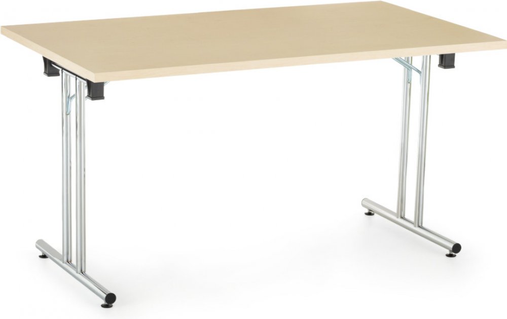 Skvělé řešení do menších prostorů Skládací stůl Impress s rozměry 140 x 80 cm je skvělým řešením zejména do administrativních prostorů nebo konferenčních či zasedacích místností. Využijete je všude tam, kde dochází často k přesunům či změnám v uspořádání místnosti. Nábytková řada Impress nabízí také širokou škálu jiných prvků, které vám pomohou optimálně přizpůsobit konkrétní místnost. Třeba prostřednictvím kontejnerů, které zajistí další úložný prostor a budete tak mít vždy vše potřebné po ruce. Využít však můžete také skříní nebo některého z doplňků této řady. Při rovnoměrném zatížení je maximální nosnost stolu 80 kg. Kovová podnož skládacího stolu Impress Stohování stolů vám ušetří mnoho místa Ušetřete místo stohováním Horní deska skládacího stolu je vyrobena z laminované dřevotřísky o síle 22 mm. Stojí na stabilní kovové podnoži, která při rozložení vytvoří výšku stolu 73,2 cm. Velkou výhodou skládacího stolu Impress je maximální úspora místa při skladování. Stoly jsou totiž stohovatelné a umožňují tak uložení několika kusů na sebe. Samotné složení je pak velmi rychlé a jednoduché. Nohy stačí pouze narovnat a podepřít pojistkou. Světlý nebo tmavý dezén? Skládací stůl Impress nabízíme ve třech různých dezénech, které vám zaručí jednotný vzhled vaší kanceláře. Světlé dezény, jako například javor či bílá, navozují příjemnou pracovní atmosféru a místnost se díky nim zdá prostornější. Tmavé dezény, kterým je tmavý ořech, naopak vyvolávají pocit stability a autority. Dezény: javor, bílá, tmavý ořech