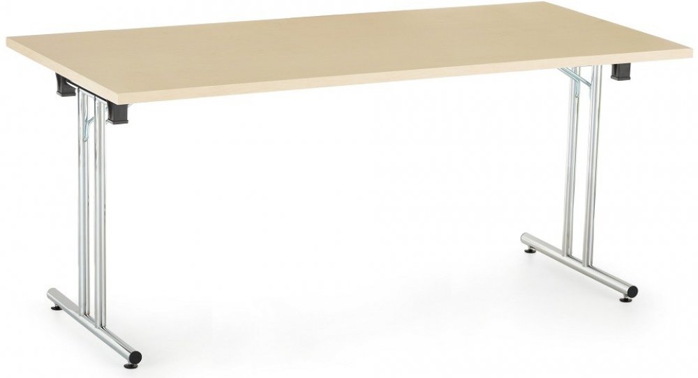 Skvělé řešení do menších prostorů Skládací stůl Impress s rozměry 160 x 80 cm je skvělým řešením zejména do administrativních prostorů nebo konferenčních či zasedacích místností. Využijete je všude tam, kde dochází často k přesunům či změnám v uspořádání místnosti. Nábytková řada Impress nabízí také širokou škálu jiných prvků, které vám pomohou optimálně přizpůsobit konkrétní místnost. Třeba prostřednictvím kontejnerů, které zajistí další úložný prostor a budete tak mít vždy vše potřebné po ruce. Využít však můžete také skříní nebo některého z doplňků této řady. Při rovnoměrném zatížení je maximální nosnost stolu 80 kg. Kovová podnož skládacího stolu Impress Stohování stolů vám ušetří mnoho místa Ušetřete místo stohováním Horní deska skládacího stolu je vyrobena z laminované dřevotřísky o síle 22 mm. Stojí na stabilní kovové podnoži, která při rozložení vytvoří výšku stolu 73,2 cm. Velkou výhodou skládacího stolu Impress je maximální úspora místa při skladování. Stoly jsou totiž stohovatelné a umožňují tak uložení několika kusů na sebe. Samotné složení je pak velmi rychlé a jednoduché. Nohy stačí pouze narovnat a podepřít pojistkou. Světlý nebo tmavý dezén? Skládací stůl Impress nabízíme ve třech různých dezénech, které vám zaručí jednotný vzhled vaší kanceláře. Světlé dezény, jako například javor či bílá, navozují příjemnou pracovní atmosféru a místnost se díky nim zdá prostornější. Tmavé dezény, kterým je tmavý ořech, naopak vyvolávají pocit stability a autority. Dezény: javor, bílá, tmavý ořech