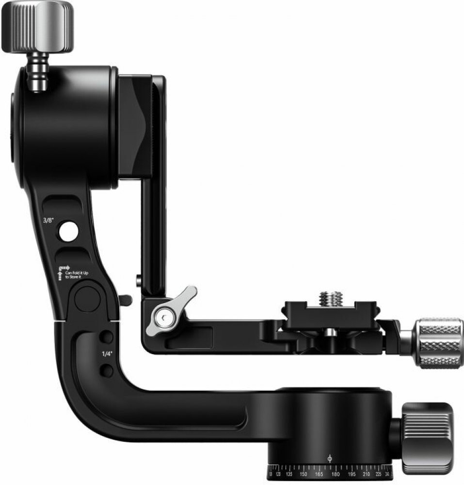 Důležitou vlastností hlavy kromě kompaktnosti je, že je sklápěcí. Je díky tomu při převozu skladnější než kterákoliv jiná gimbal hlava.