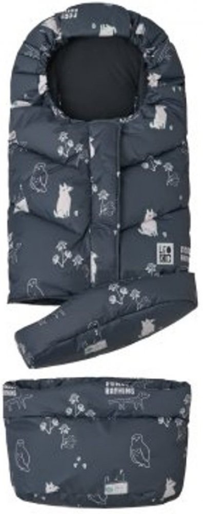 Kapuci a klopy můžete jednoduše stáhnout pomocí šňůrek, což zajišťuje dokonalou ochranu před chladem. V oblasti nohou je použitý speciální ochranný materiál proti nečistotám, takže se nemusíte obávat, že by špinavé boty poškodily vnitřní podšívku. Fusak je vybaven univerzálními otvory pro bezpečnostní pásy, díky čemuž je vhodný do většiny kočárků i autosedaček s pětibodovými, tříbodovými i jednodílnými popruhy.