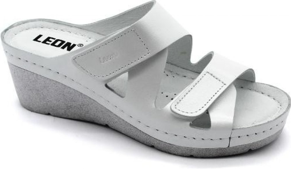 Leon 1004 dámské kožené pantofle na klínku bílá