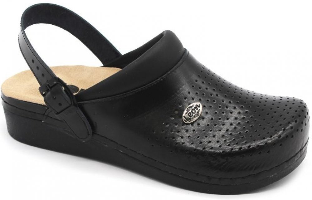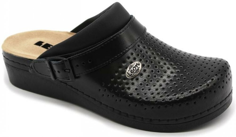 Dámské kožené pantofle LEON 5002 z pravé kůže s perforovaným povrchem nabízejí elegantní design a komfort pro každodenní použití doma, v práci nebo na cestách. Perforace zaručuje vynikající prodyšnost, zatímco nastavitelné přezky s kovovou sponou a polohovatelný pásek umožňují přeměnu na sandály.