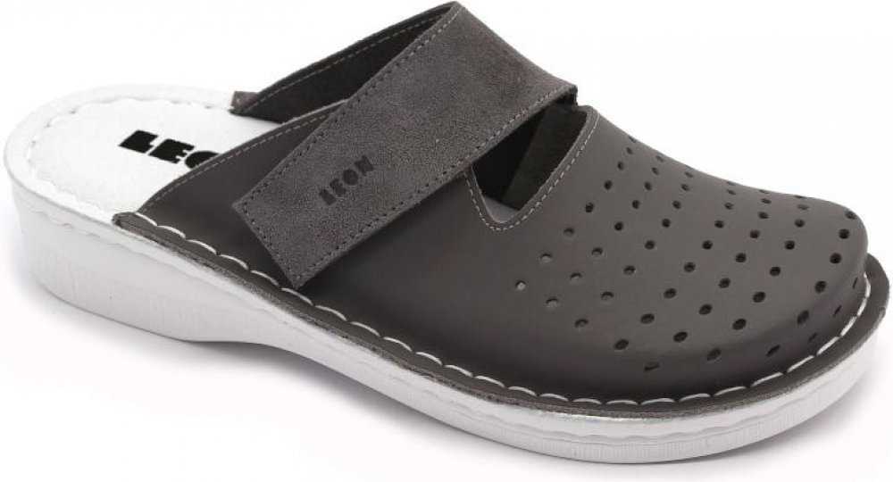 Dámské kožené pantofle LEON V265 jsou navrženy tak, aby kombinovaly moderní design s maximálním pohodlím. Svršek z kvalitní kůže s perforovaným povrchem zajišťuje přirozenou prodyšnost a dlouhou životnost obuvi. Měkká anatomicky tvarovaná stélka pomáhá snižovat únavu chodidel a zajišťuje správnou podporu klenby. Nastavitelná přezka na suchý zip umožňuje individuální přizpůsobení šířky. Obuv je vho...
