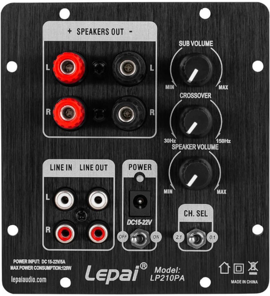 Kompaktní modulový zesilovač 2.1 LP210PA od společnosti Lepai vám usnadní vytváření vlastních aktivních audio systémů subwooferu a satelitních reproduktorů. Díky šířce pouhých 11,4 cm a výšce 12,7 cm můžete tento zesilovač instalovat i do těch nejmenších konstrukcí. Přesto můžete díky výkonu 60 W do subwooferu a 30 W do každého satelitu očekávat silný výkon. Jedná se o ideální modulový zesilovač pro použití v kanceláři, ložnici nebo dokonce v přenosných systémech subwoofer + satelitní reproduktory.