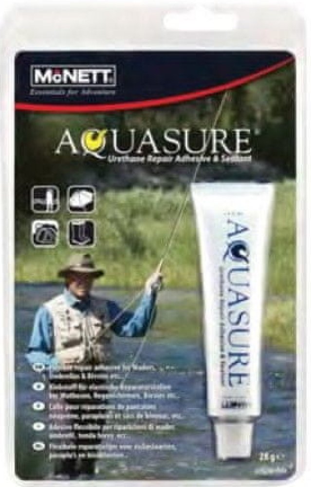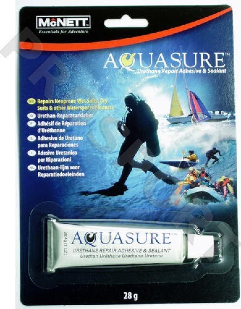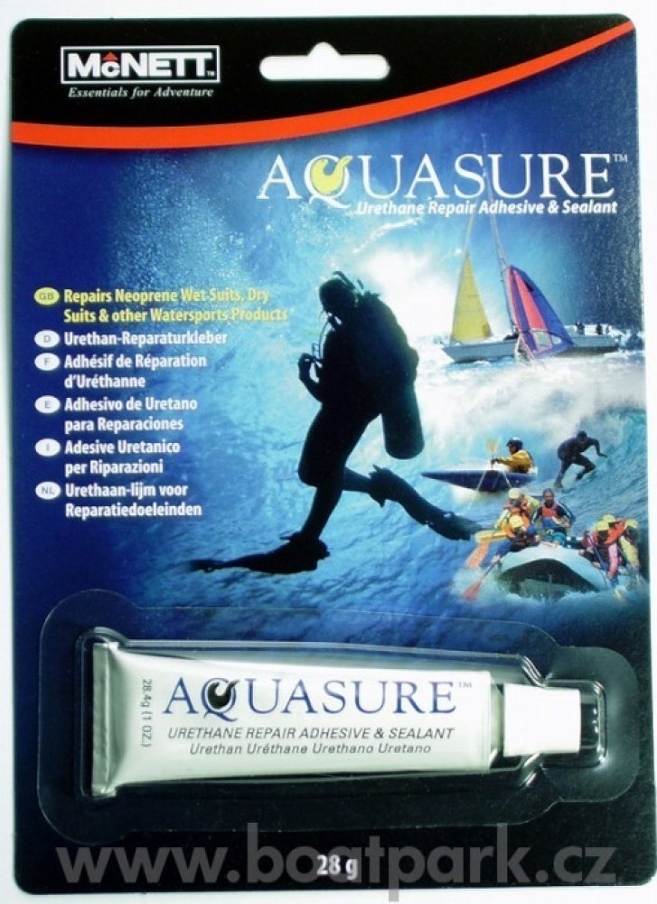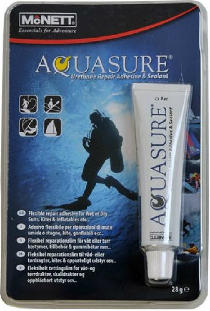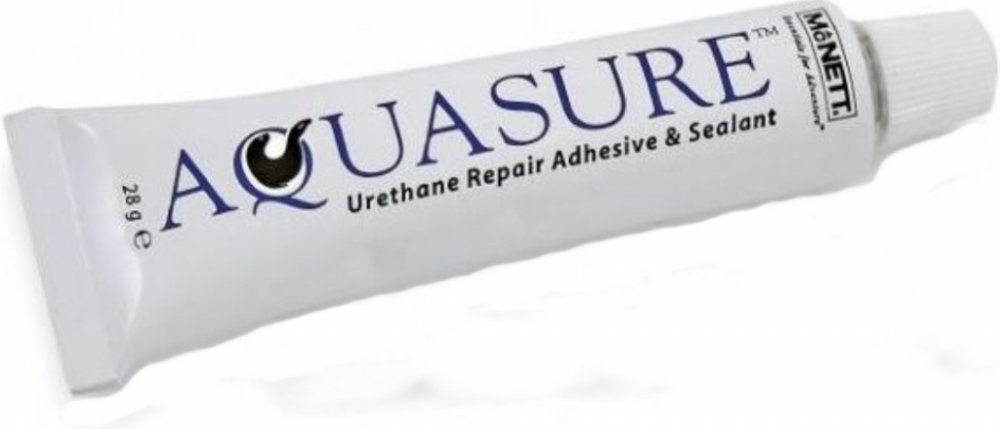 Lepidlo AQUASURE Watersport je lepidlo na bázi polyuretanu pro opravu neoprénu a středně těžkých zátěrovaných tkanin (Cordura a pod.)