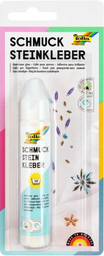 Průhledné lepidlo, kterým si snadno nalepíme ozdobné kamínky třeba na oblečení, papír, dřevo, polystyren apod. Obsah: 30 g, lepí kamínky na: textil, papír, kůži, polystyren, dřevo atd. lepidlo obsahuje Isothiazol - může způsobit alergickou reakci. Lepidlo nanášíme na čistý, suchý a nemastný povrch. Textilie doporučujeme předem vyprat bez aviváže. Lepidlo naneseme v bodech na kamínky ty přitlačíme na textil a necháme 4 hodiny zaschnout, po zaschnutí je lepidlo průhledné (není vidět), textilie můžeme prát nejdříve po 24 hodinách od aplikace, lepidla můžeme prát v pračce na 30 °C, nepoužívejte sušičku!