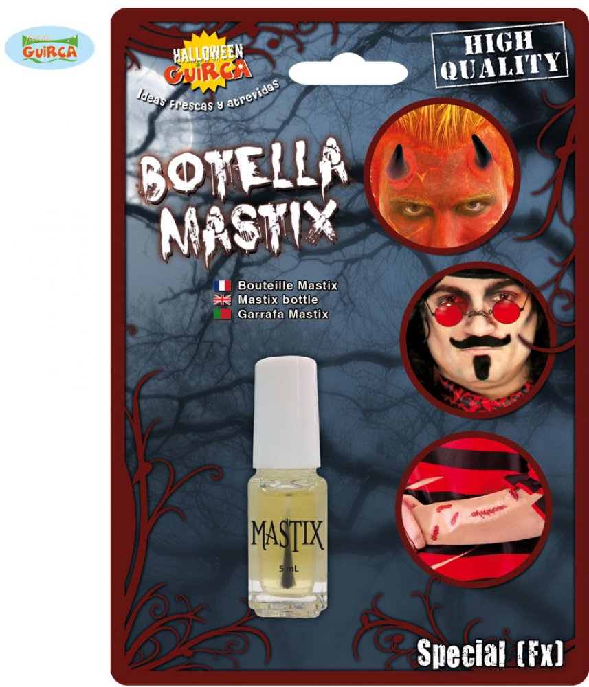Lepidlo na kůži pro přilepení falešného kníru, nosu, obočí nebo třeba hororového efektu. Objem 5 ml. Ve víčku je zabudován aplikátor - štěteček, kterým lepidlo dobře nanesete na kůži. Nevhodné pro děti do 14 let, není hračka, držte mimo dosah dětí. Nepřibližujte k ohni. Po požití si pečlivě umyjte ruce, nevdechujte ani nepolykejte. Pouze pro vnější použití. Neaplikujte do okolí očí a na sliznice. V případě kontaktu s očima několik minut pečlivě vyplachujte vodou.