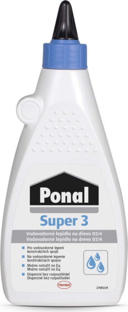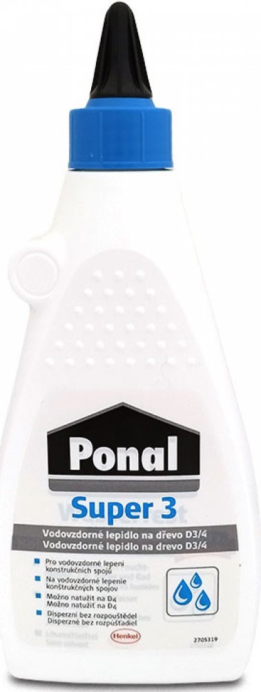 Ponal Super 3 je disperzní lepidlo na bázi PVAc odolné vůči vodě a vlhkosti.