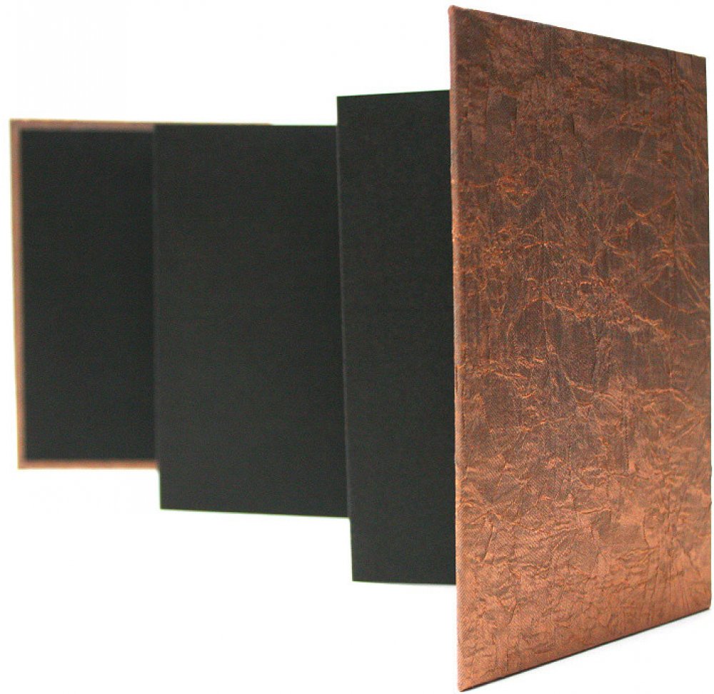 Leporelo na fotografie z hnědého hedvábí. Dárkové luxusní provedení. Do leporela Emma vložíte 20 ks fotografií 10x15 cm nebo 13 x 18 cm. Leporelo na fotky Emma využijete jako svatební a jubilejní. Převázáno stuhou.