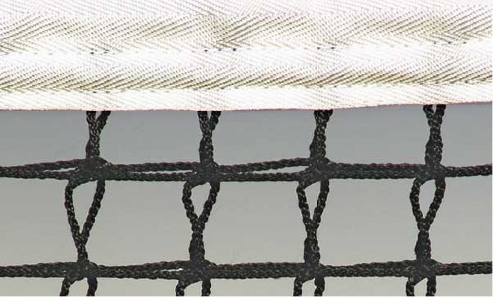 Tenisová síť Standard zdvojená 3mm Je určena pro běžné, opakující se použití se střední a vyšší zátěží. Složení: - PP - polypropylénová síť, černé barvy, s velikost oka 42mm, síla 3mm - horní okraj sítě je obšit vysokopevnostním PES - polyesterovým popruh