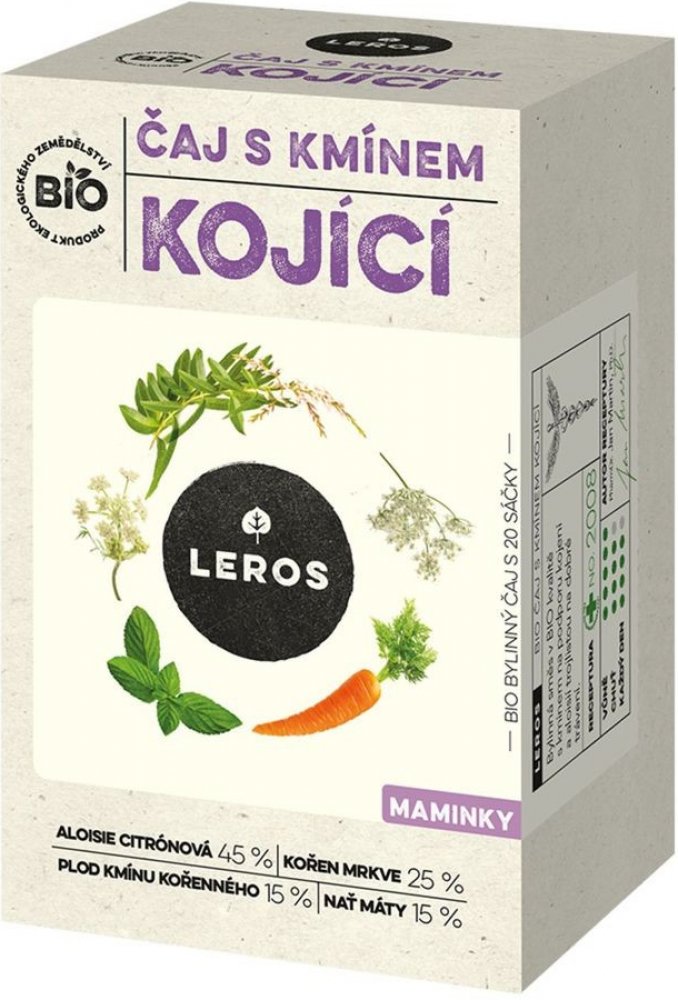 Leros Kojící BIO čaj s kmínem je bylinná směs určená k doplnění pitného režimu kojících maminek. Spojuje účinky kmínu, který podporuje kojení, s aloisií trojlistou pro podporu trávení. Harmonická chuť a vůně čaje přispívají k pohodě maminky i dítěte.
