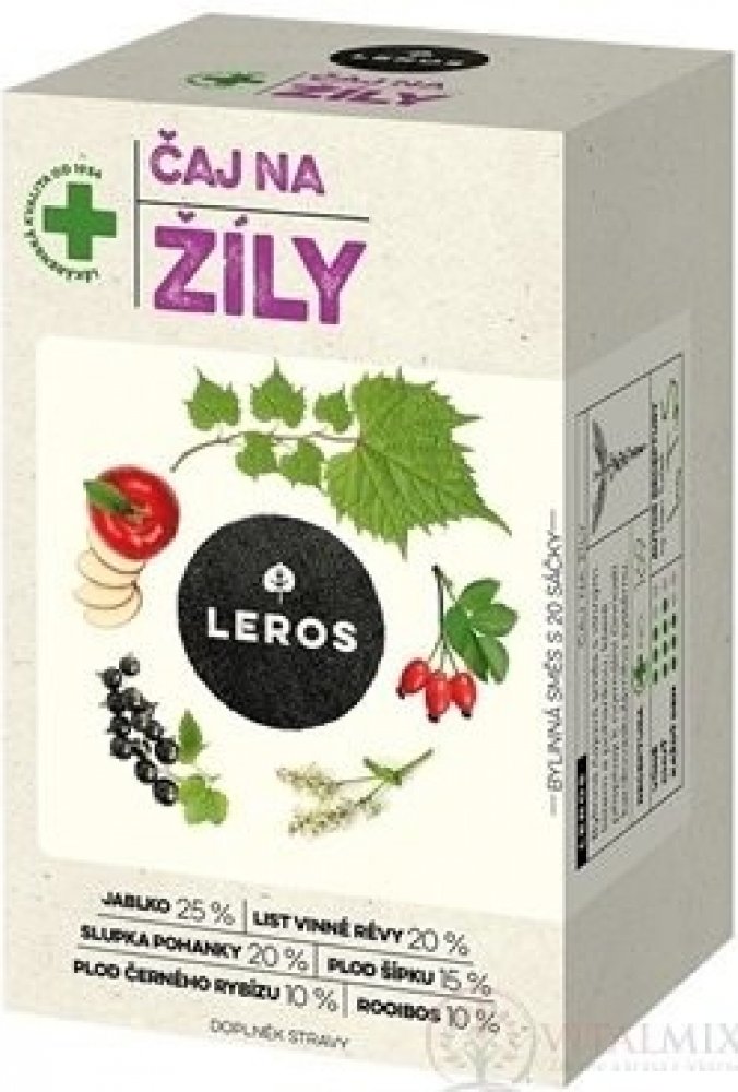 Silné cévy a žíly. Leros Čaj na žíly porcovaná bylinná směs s listy vinné révy a pohankou pro zdravé cévy. Vinnou révu pěstují lidé od dávných časů a její sladké plody jim přinášejí mnohá potěšení, ovšem za pozornost stojí i její listy. Látky v nich obsažené mají příznivý vliv na zdraví žil a cév a na zmírnění pocitu těžkých nohou. Pohanka je významným zdrojem flavonoidu rutinu. Obsahuje také vyvá...
