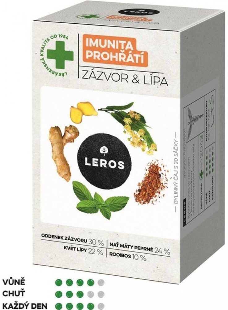 Kvalitní LEROS Imunita prohřátí Zázvor Lípa n.s.20x2g za 64.8 Kč. Bylinná směs se zázvorem a lípou na podporu obranyschopnosti Vašeho těla.