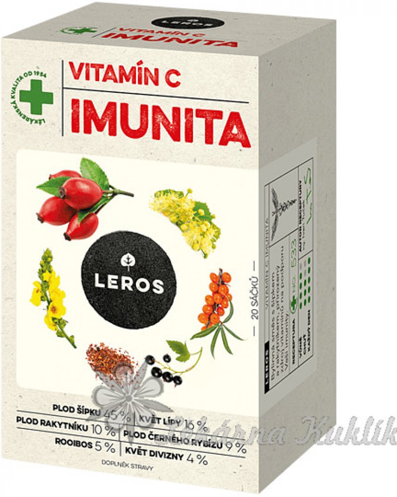 1 nálevový sáček obsahuje min. 20,0 mg vitamínu C (25 % RHP - referenční hodnota příjmu).