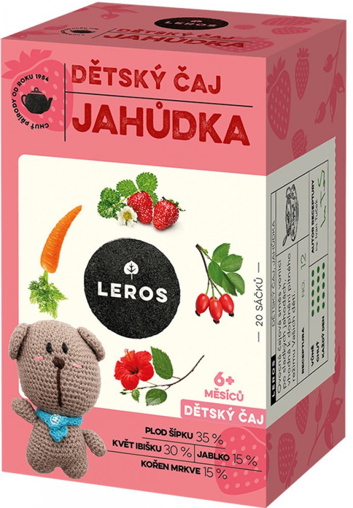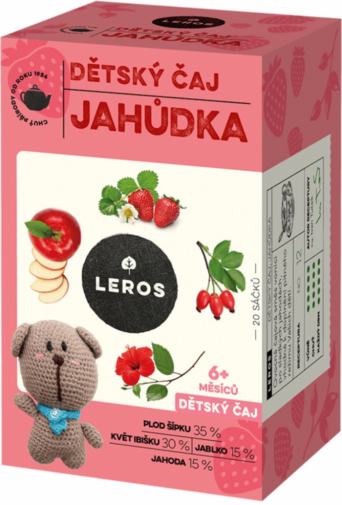 Ovocná čajová směs dětského čaje vonící po sladkých jahodách je chutným doplňkem dětského pitného režimu. Voňavý čaj z šípku, ibiškového květu, jablek a jahod si ovšem oblíbí i mnozí dospělí. V parném létě ho můžete vyzkoušet i chlazený.