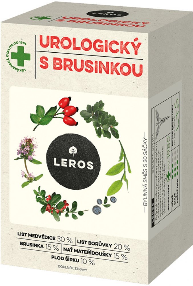Bylinná směs s medvědicí a mateřídouškou, které podporují normální činnost močové soustavy, brusinka se šípkem přispívají k přirozené obranyschopnosti organismu.