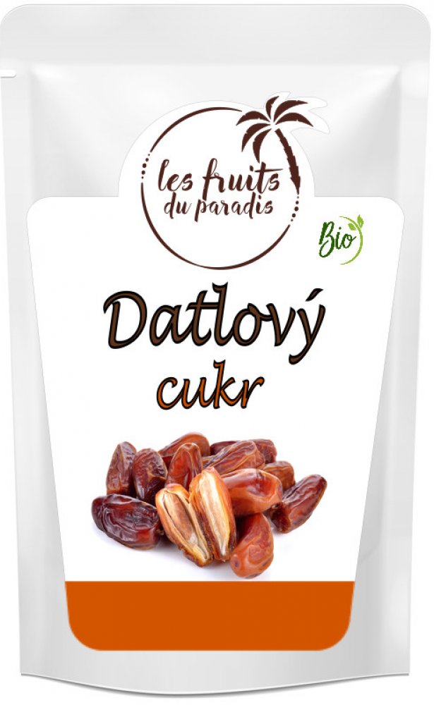 CZ-BIO-002/Zemědělská produkce mimo EU Minimální trvanlivost: min 18 měsíců od okamžiku produkce Skladování: chladné, tmavé a suché místo (max. 20°C, max, 65 % vlhkost vzduchu)Výroba datlového cukru je poměrně jednoduchá. Čerstvé datle se prohřejí horkou párou, díky čemuž dojde k rychlejšímu cukernatění, následně jsou datle usušeny a rozemlety. Výsledný produkt si zachovává mnoho vitamínů, minerálních látek a vysoké procento vlákniny. Jedná se o zdravější variantu slazení. Datlový cukr můžete použít všude tam, kde používáte běžný cukr, krom nápojů. Jeho sladivost je nižší, než u běžného cukru. Nutriční hodnoty na 100g výrobku: ENERGIE [kJ / kcal]: 1493 / 353TUKY [g]: 0,5 z toho NASYCENÉ MASTNÉ KYSELINY [g]: < 0,1SACHARIDY [g]: 80,0 z toho CUKRY [g] : 74,4VLÁKNINA [g]: 11,0BÍLKOVINY [g]: 2,7SŮL [g]: 0,015Nutriční hodnoty se mohou u přírodních produktů lišit.