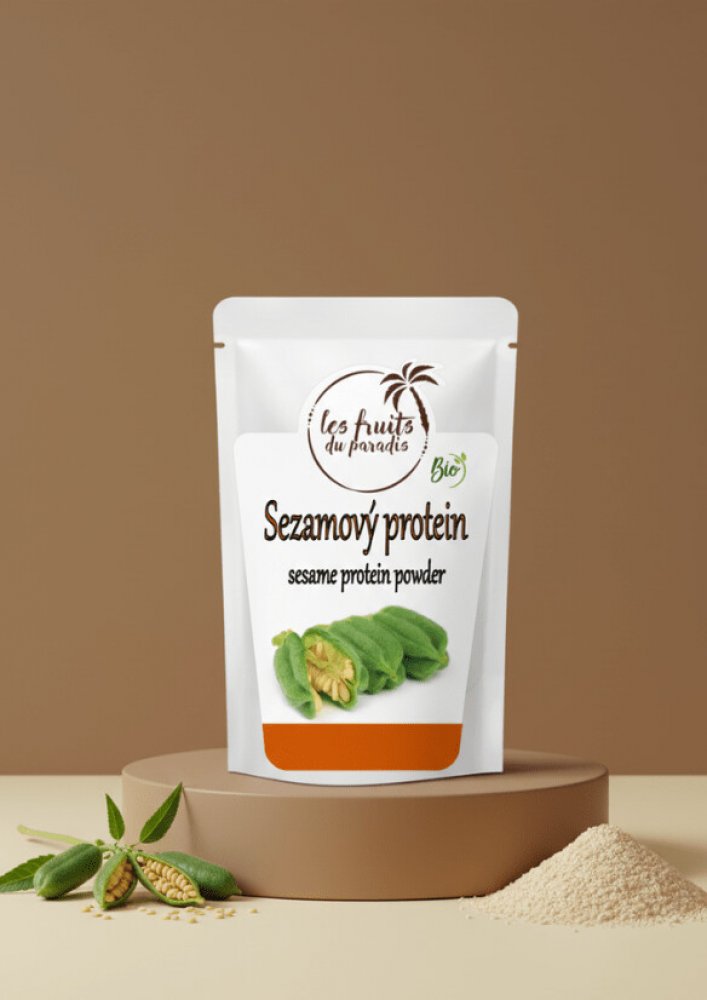 Sezamový protein se vyrábí vyluhováním sezamových semínek.Historie sezamu sahá opravdu daleko – při vykopávkách byly nalezeny zuhelnatělé zbytky sezamu, které ukázaly, že se pěstoval již před 3 000 lety před naším letopočtem. Toto semínko se vyskytuje především v Africe, vlastně už ve starém Egyptě byl pěstován. Zajímavostí je, že sezam je opravdu tou nejstarší plodinou, která se využívala (a vlastně stále využívá) k získání jedlého oleje.Jaké má sezam účinky na naše tělo? Sezam pomáhá naší mysli zůstat soustředěná, což uvítají sportující i studující jedinci. Najdeme v něm vitamíny z řady B (B2, B3, B5 a B6), ale také minerály jako je hořčík a vápník.Tento protein je zcela přírodní a ve srovnání se syrovátkovým proteinem je veganský a bez laktózy. Má jemnou sezamovou chuť, takže ať už si jej dáte do smoothies, kaší nebo ho přidáte například při pečení do těsta, chuť pokrmů ani nápojů nepokazí – naopak ji ozvláštní.Protein můžeme doporučit všem, kteří mají nějakou fyzickou zátěž, protože právě proteiny jsou nezbytné při regeneraci a tvorbě svalstva, také při hubnutí. Jakmile máme větší fyzickou zátěž, na druhý den vás mohou bolet svaly. Po požití proteinu tuto bolest nemusíte vůbec cítit! Takže ať už fyzicky pracujete nebo rádi sportujete, právě sezamový protein je pro vás jako dělaný.