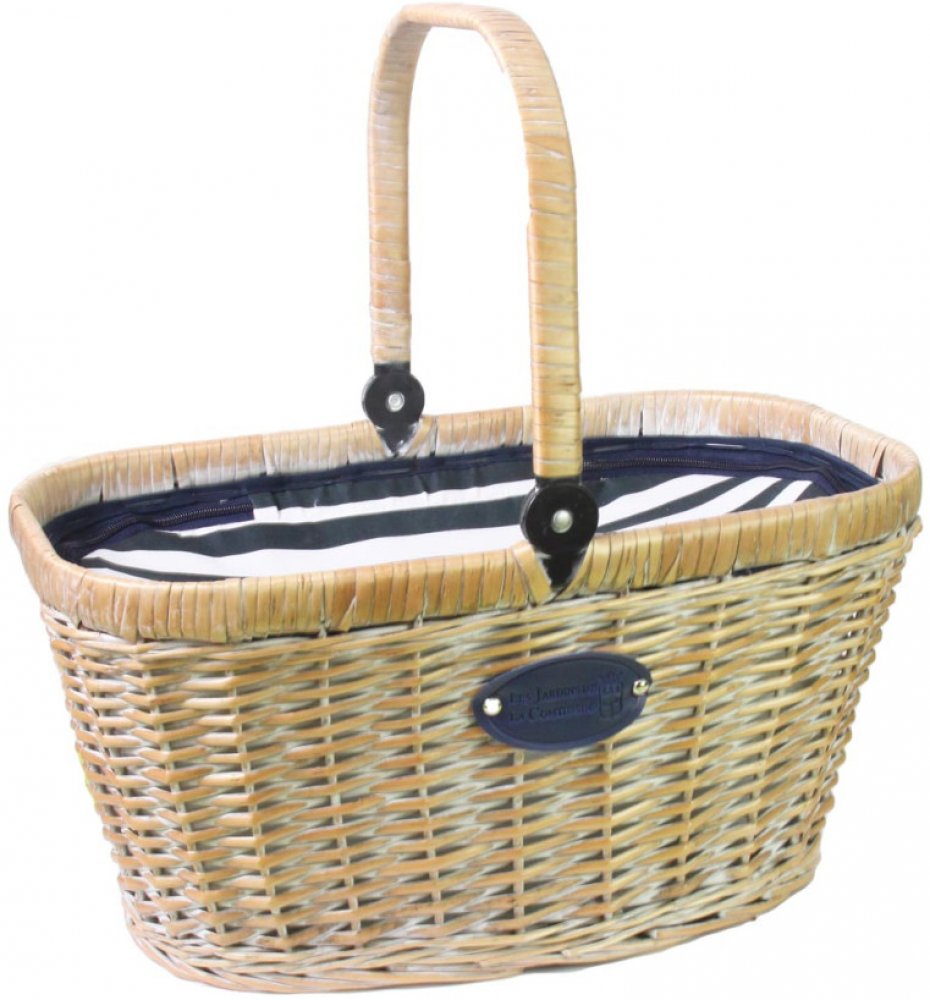 Ručně pletený koš z běleného proutí se sklopnou rukojetí. Vrchní strana termoizolační kapsy je potažena bavlněnou látkou v námořnickém stylu. Tento piknikový koš má všitou termoizolační kapsu se zipem, kde bude vaše jídlo uchováno v chladu po dlouhou dobu. Rukojeť se dá sklopit, takže je pak snadný přístup do celého prostoru košíku. Na boční straně je malá kapsička na uložení drobných věcí, jako j...