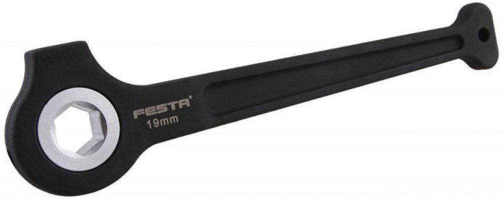 Lešenářská ráčna FESTA 19 mm je klíč - ráčna k trubkovému lešení. Tradiční lešenářská ráčna s vnitřní rohatkou, která obsahuje jen 6 velkých zubů. Díky tomu je mechanismus velmi odolný stejně, jako celá ráčna, kterou často používají i jako kladivo. Hmotnost 0,840 kg.