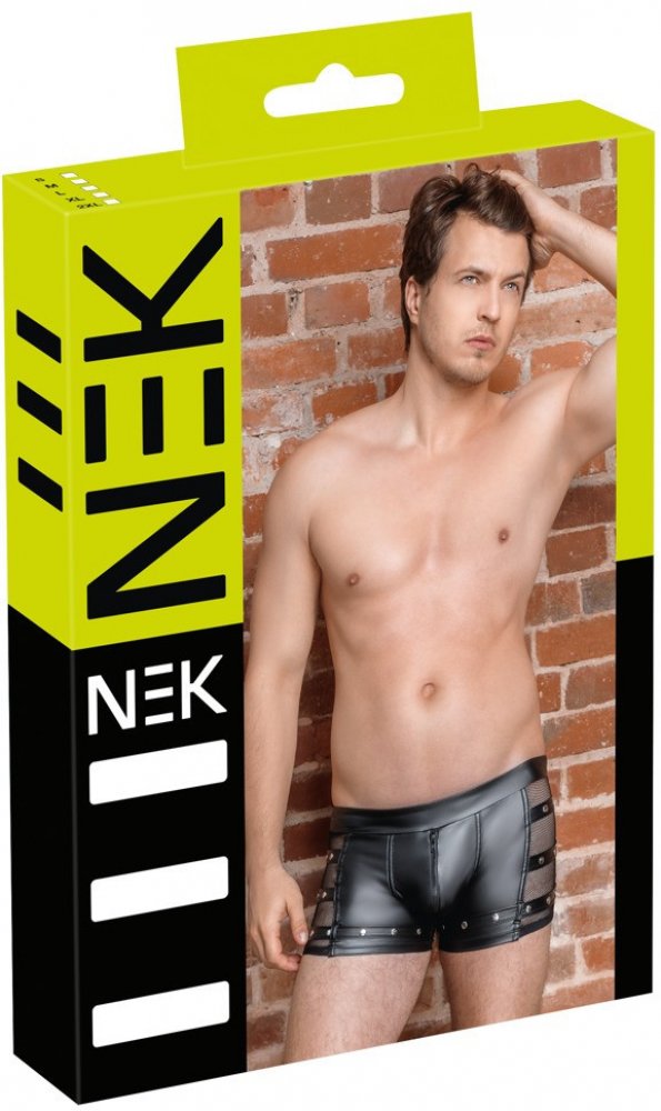Pánské boxerky se zipem vpředu, sexy pánské spodní prádlo s průsvitnými vsadkami a lesklými pásky s cvočky. Proč je to dobré? Velkolepý design Vysoká kvalita Pružná, lesklá tkanina Z obou stran zdobená průsvitnou nec vložkou a nýtovanými lesklými pásky Zapínání na zip uprostřed přední strany Krátký, sexy střih Zvýrazňuje stehna Lze nosit i jako pánské šortky Střih s vysokým pasem Specifikace výrob...