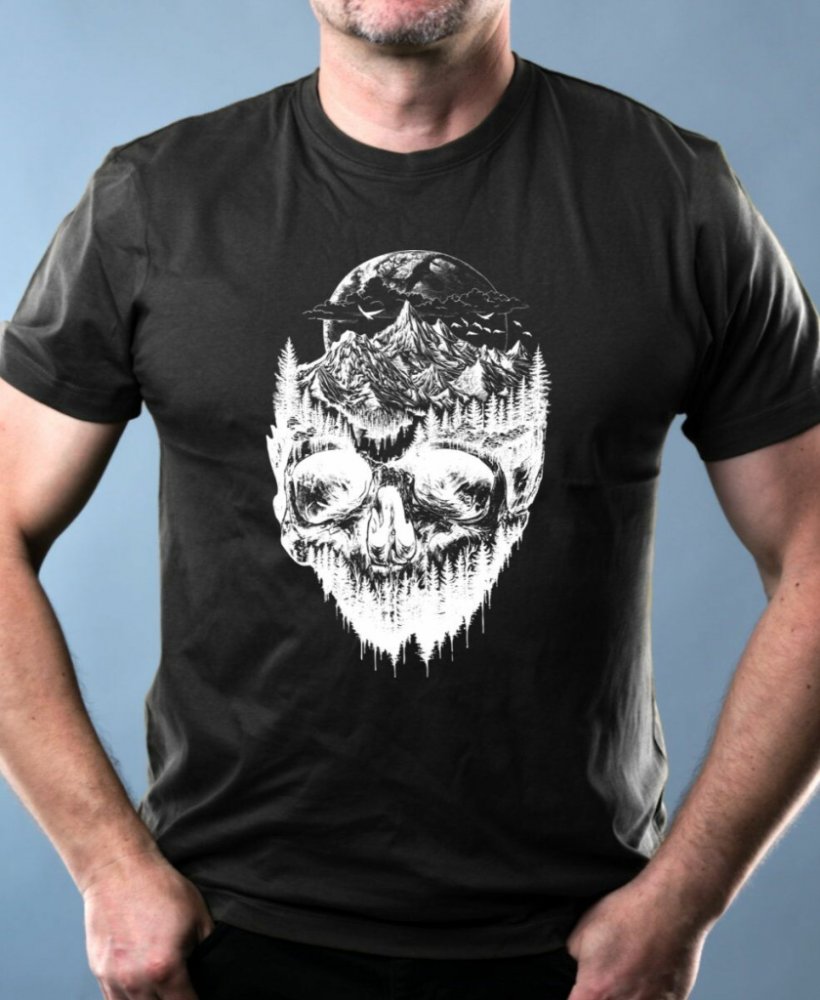 Lesní duch,bílý potisk.Tento design symbolizuje nespoutaného, divokého ducha, který v sobě skrývá sílu a krásu hor.