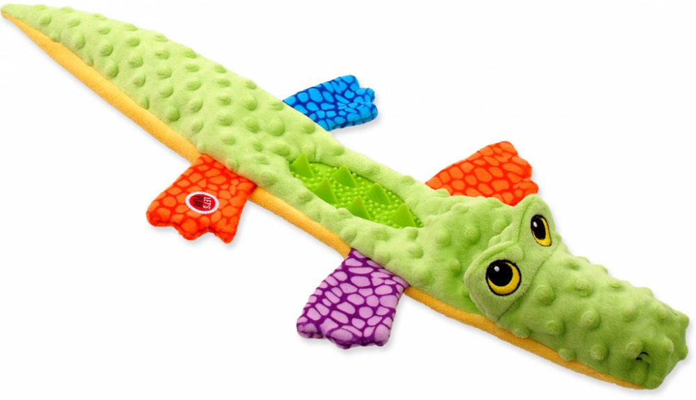 Plyšová hračka ve tvaru krokodýla.
