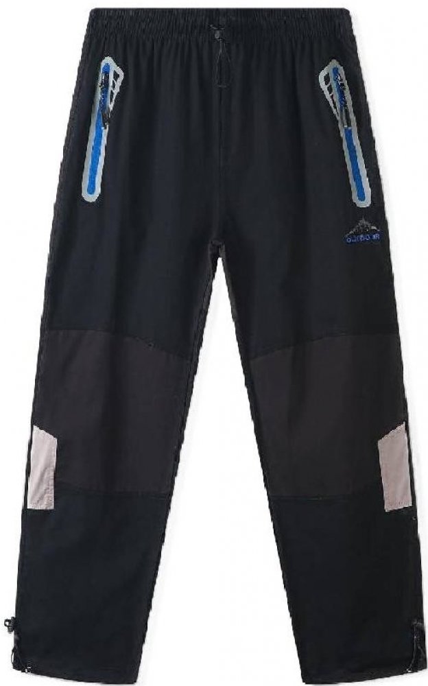 V pase jsou pružné a mají pasem provléknutou gumičku na stažení olivkou. Nohavice lze rovněž regulovat gumičkou s olivkami. Kalhoty mají dvě funkční boční kapsy na zipy.