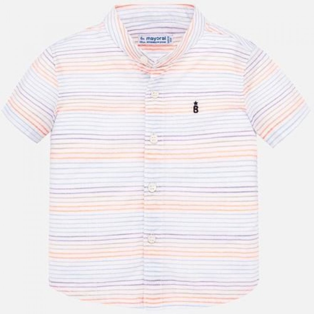 Bavlněná košile s krátkým rukávem pro miminka a batolata v letní kolekci módní značky Mayoral. Příjemná tenká košile pro horké letní dny. Krásný outfit vytvoříte chlapečkům ležérně rozepnutou košilí oblečenou přes tričko. oproti fotografii je oranžový proužek v krásně syté oranžové barvě - NEONOVÉ materiál: 100% bavlna artikl: 1161-80 Mango neon