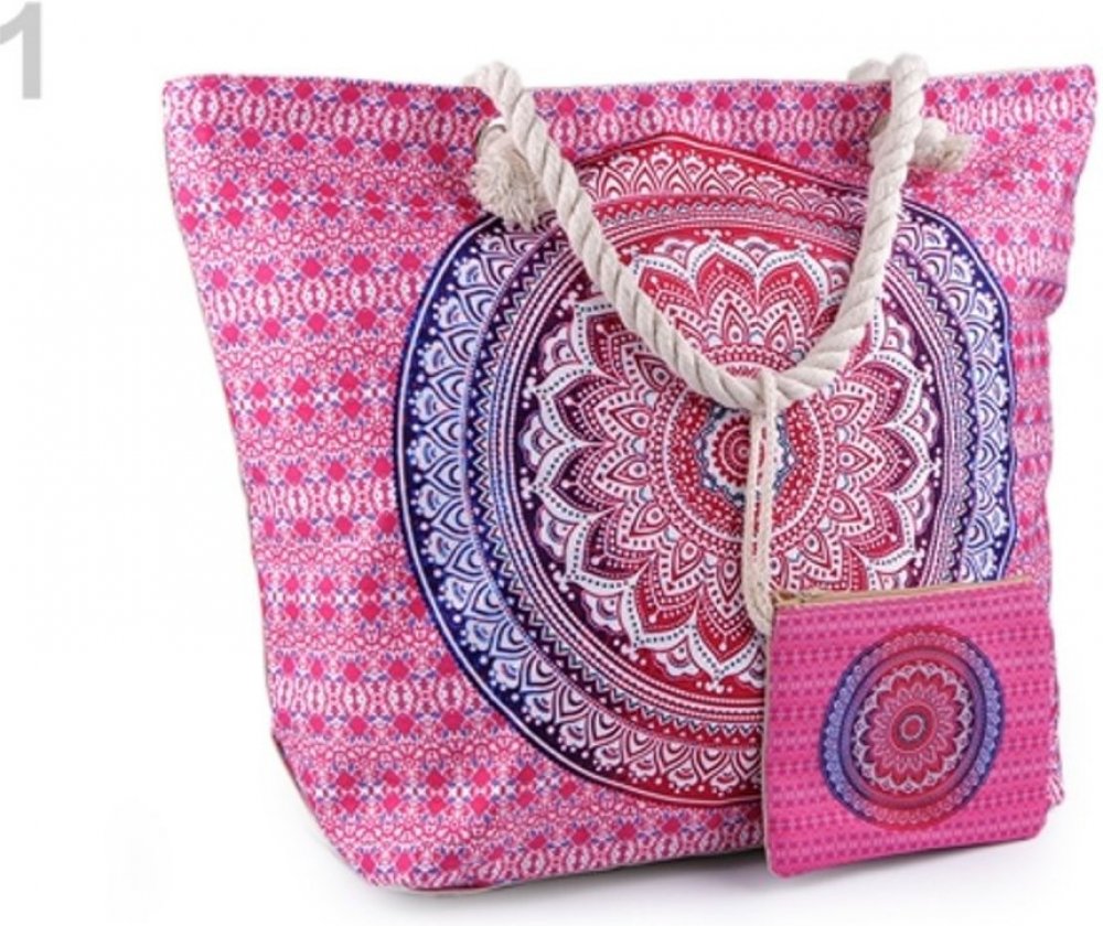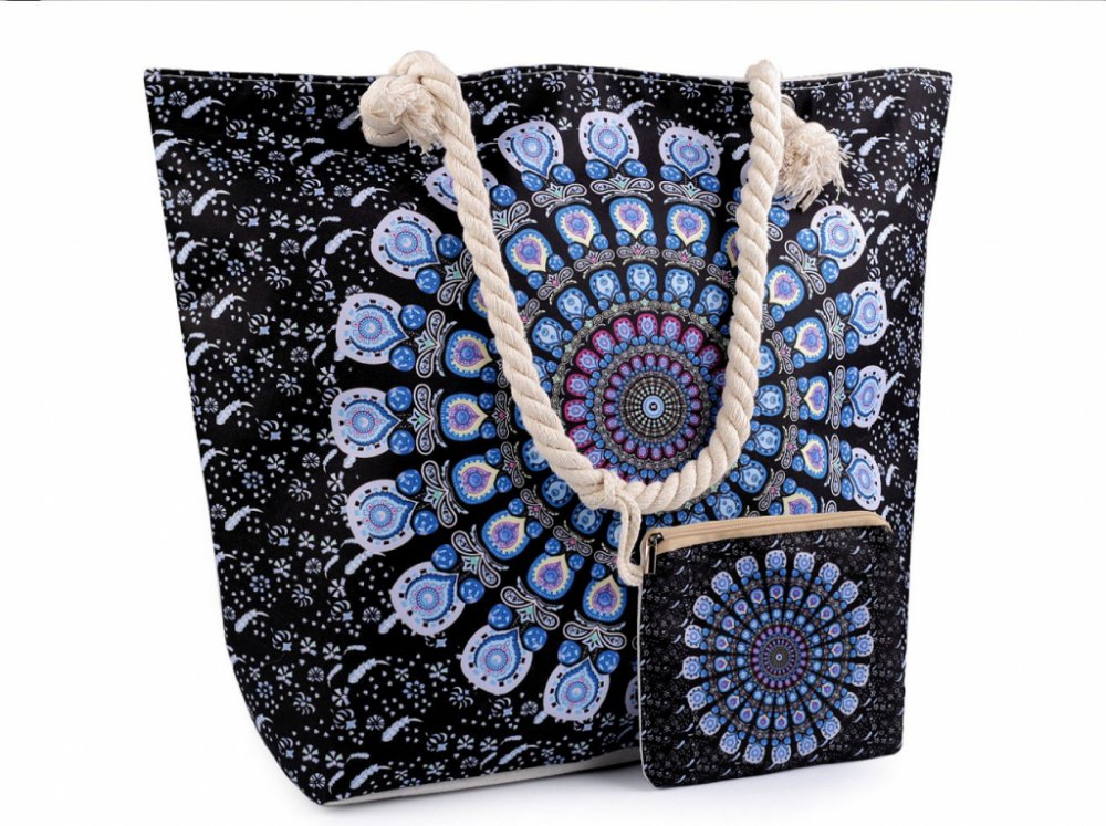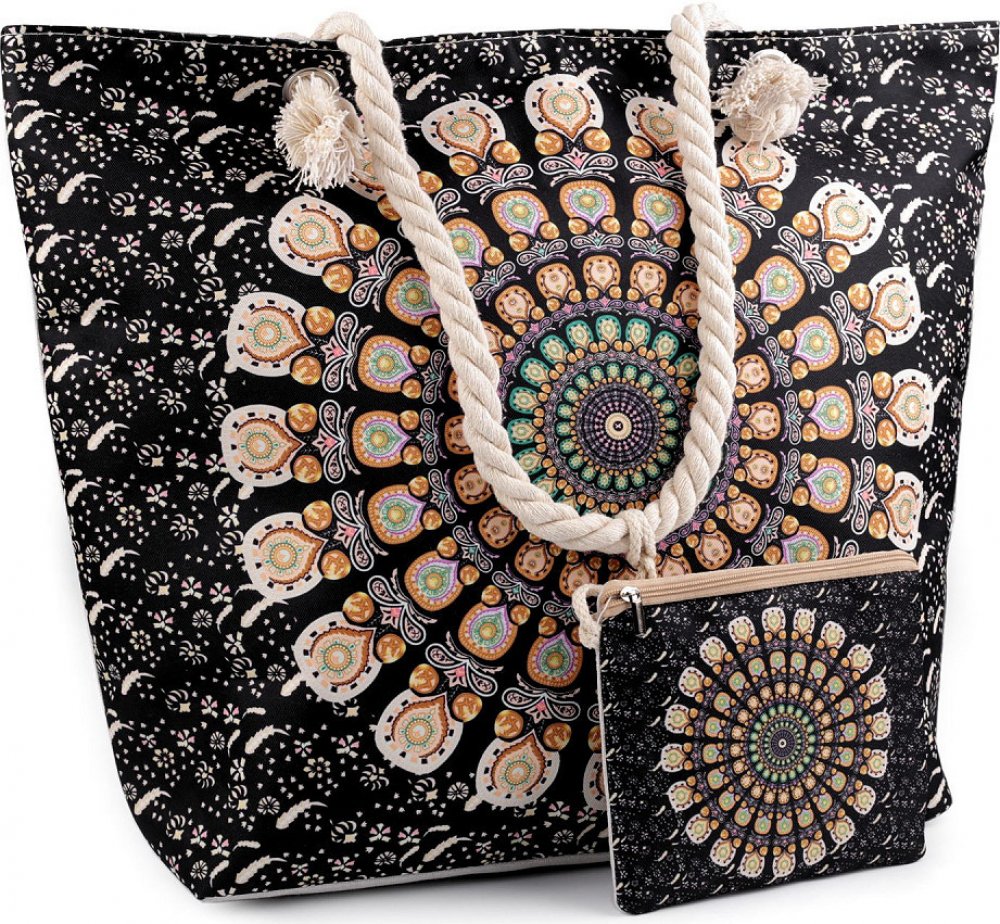 Rozměry 50×39×16 cm • materiál polyester + bavlna • odnímatelná taštička v designu mandaly • zipové uzavření • ucha z kroucené šňůry Stylová letní plážová taška Mandala je kombinací lehké odolnosti a prostorného designu – ideální společník na koupaliště, pláž i na letní procházky. Díky rozšířenému dnu taška stabilně stojí a pojme vše, co během dne potřebujete, aniž by ztratila svůj tvar či elegant...