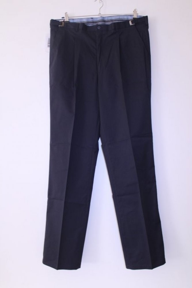 Panské letní stylové kalhoty v tmavě modrém provedení.